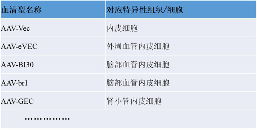 为实现特异性靶向内皮细胞,汉恒生物公司有多种血清型可供选择(表2)。