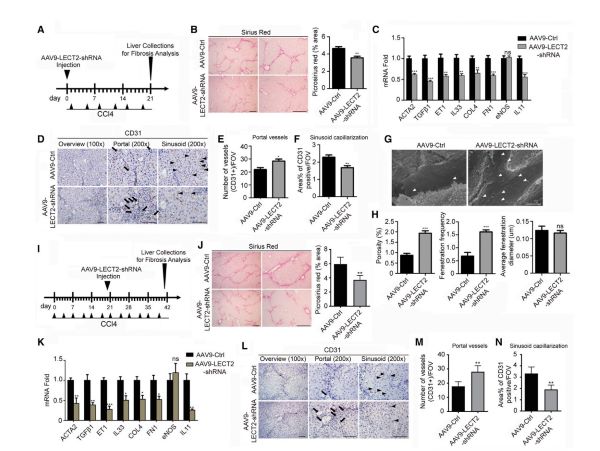 文章figure7 AAV9-LECT2-shRNA减轻肝纤维化